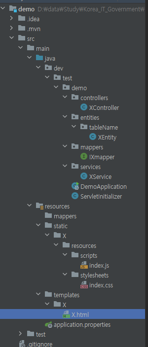 application.properties 에서 MyBatis mapper설정 ( Google 에서 mybatis mapper dtd 검색 'mapper 있는 걸로')