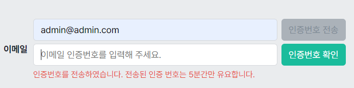 인증번호를 전송했다면 인증번호를 입력하고 인증번호 확인 버튼을 눌렀을 경우의 진행입니다.