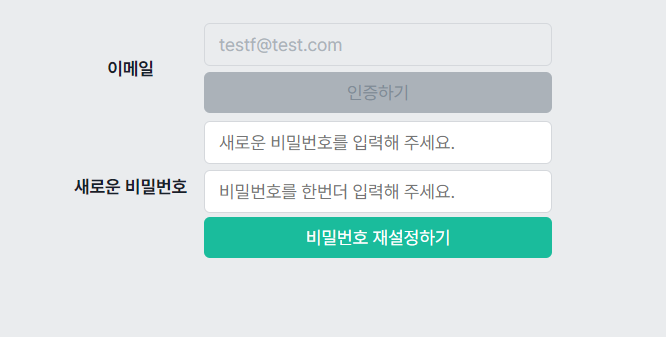 비밀번호 찾기는 이메일 인증될 경우 js를 통해서 보여지게 됩니다.